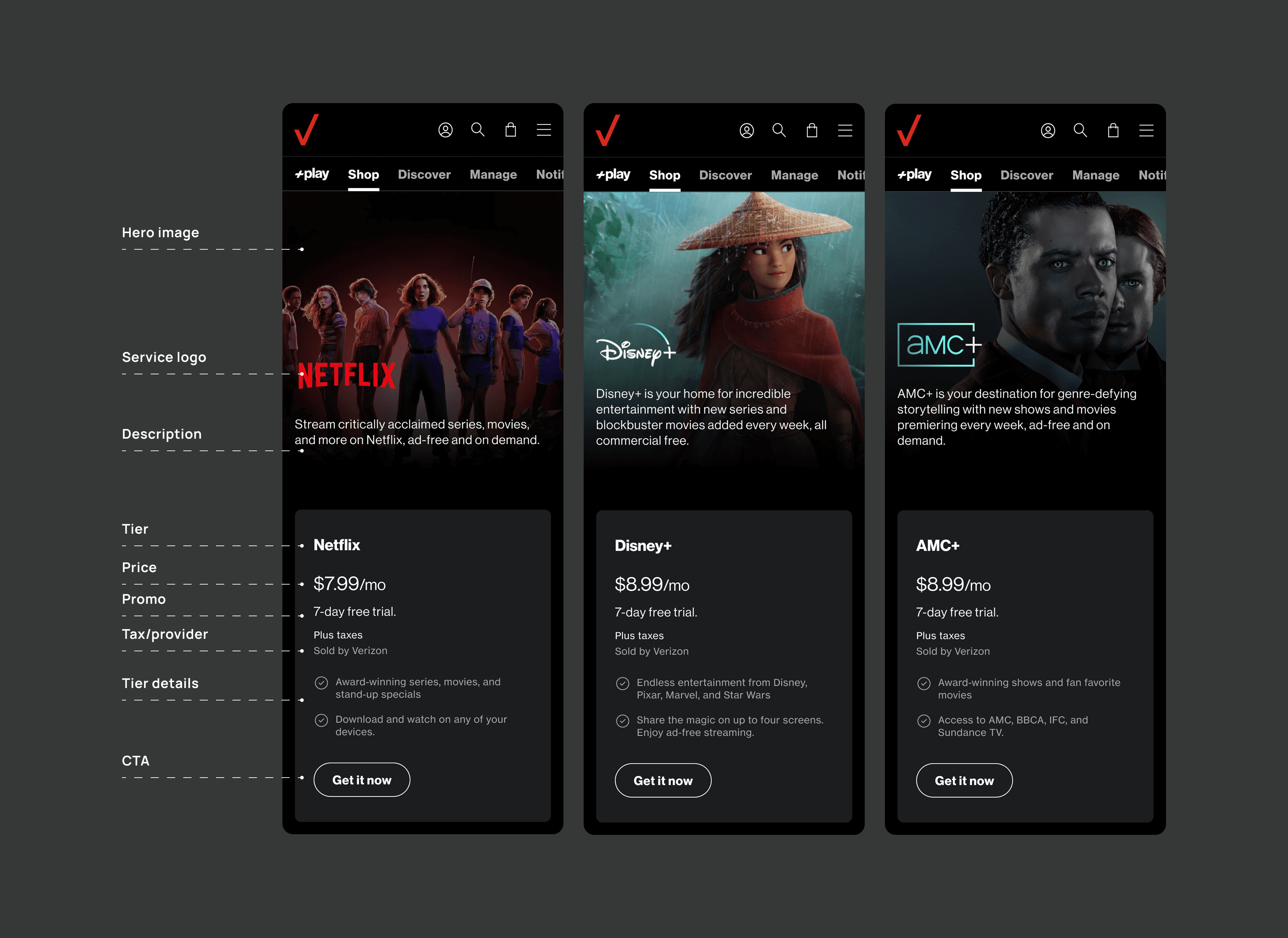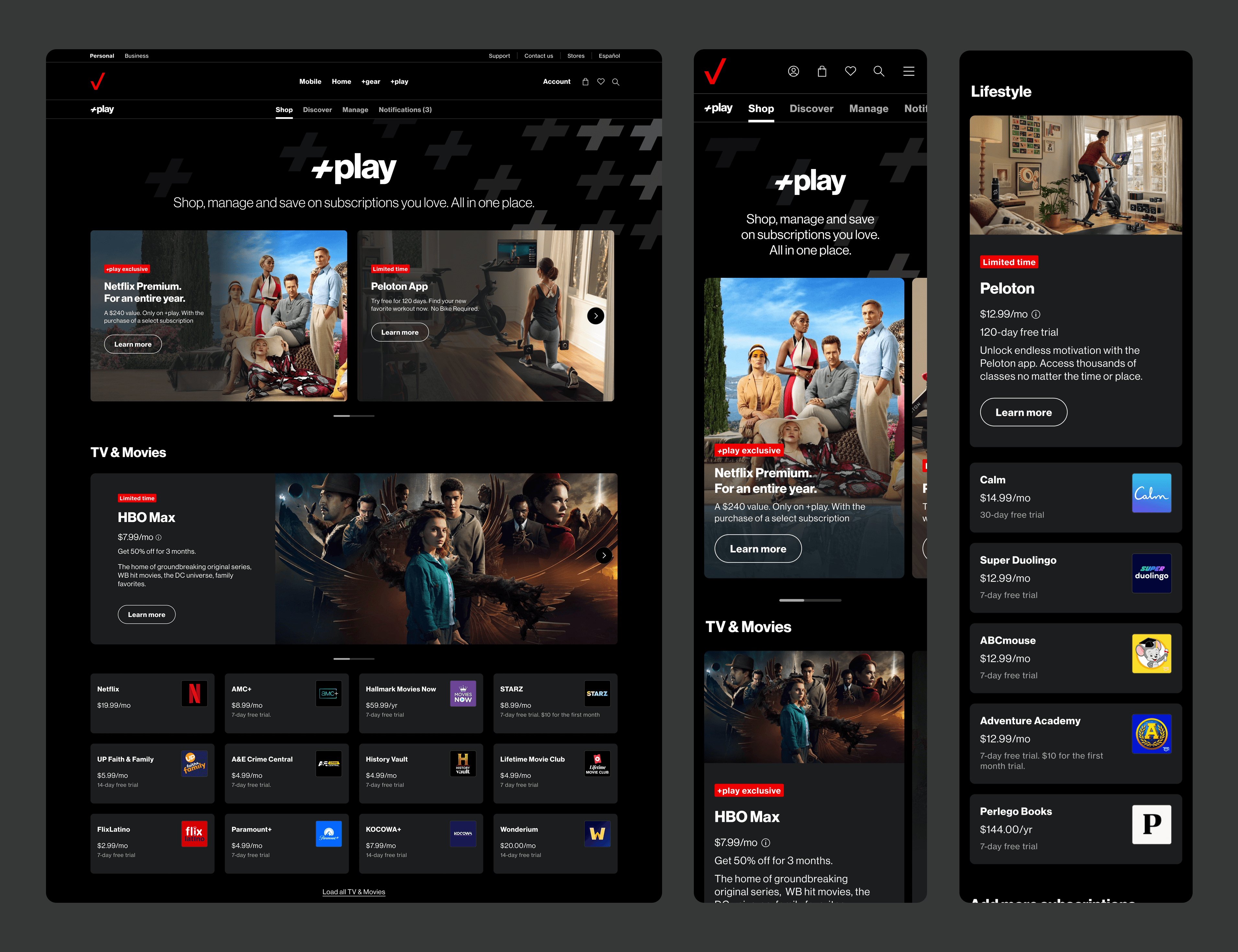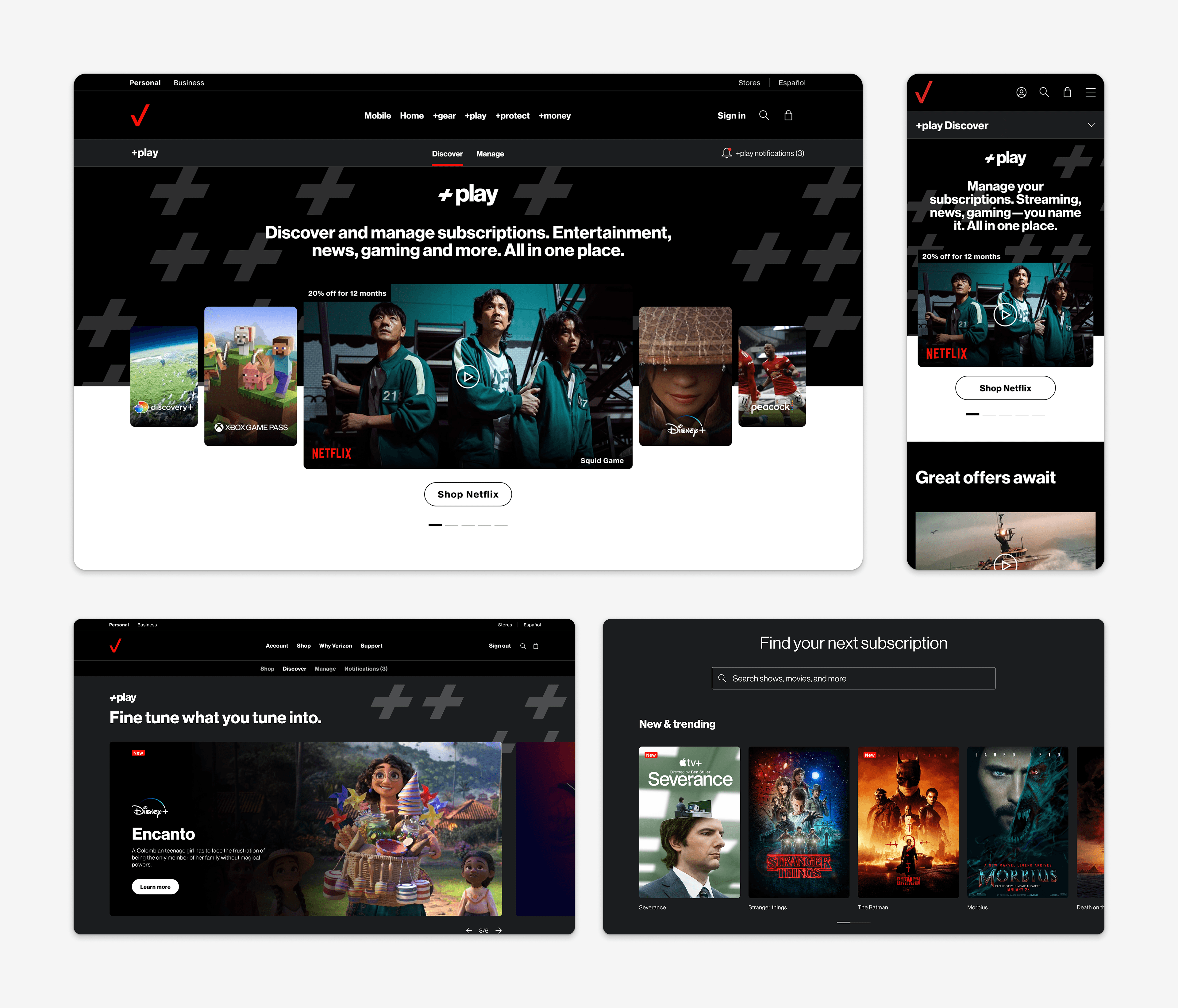 The platform needed to support bundling, cross-service discovery, and upsell opportunities while maintaining clarity and trust. This required designing a system that balanced flexibility with consistency and created a foundation for ongoing growth across Verizon’s subscription ecosystem.