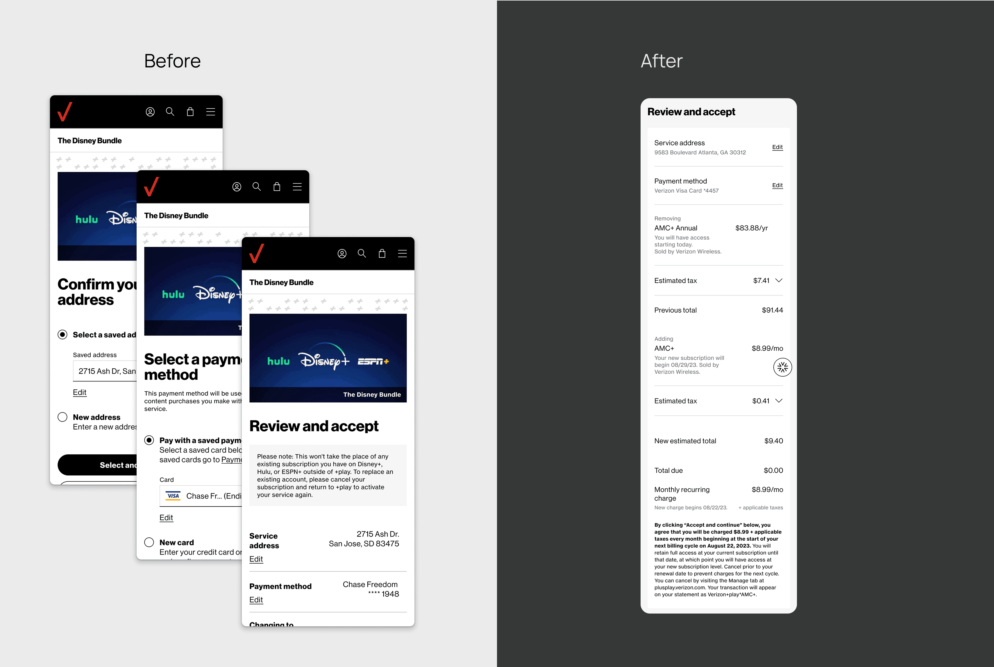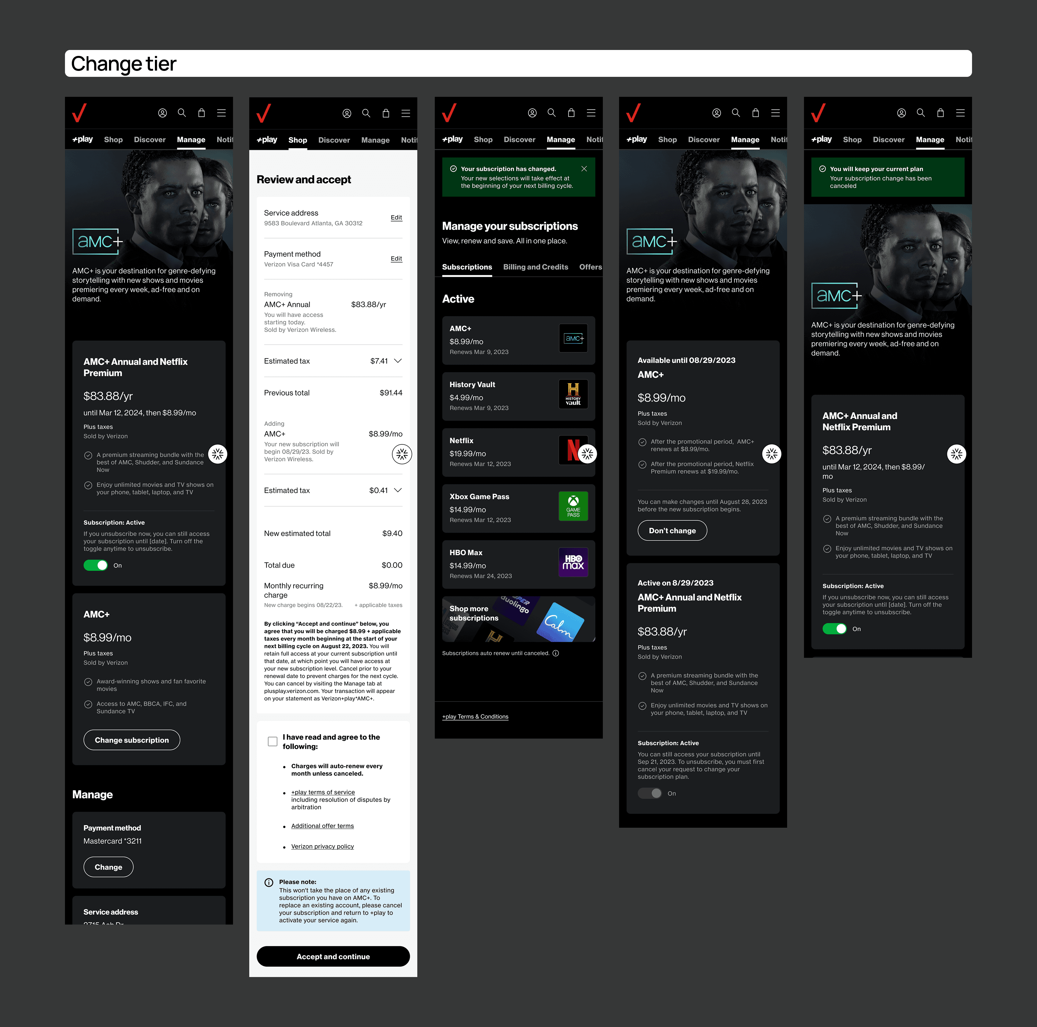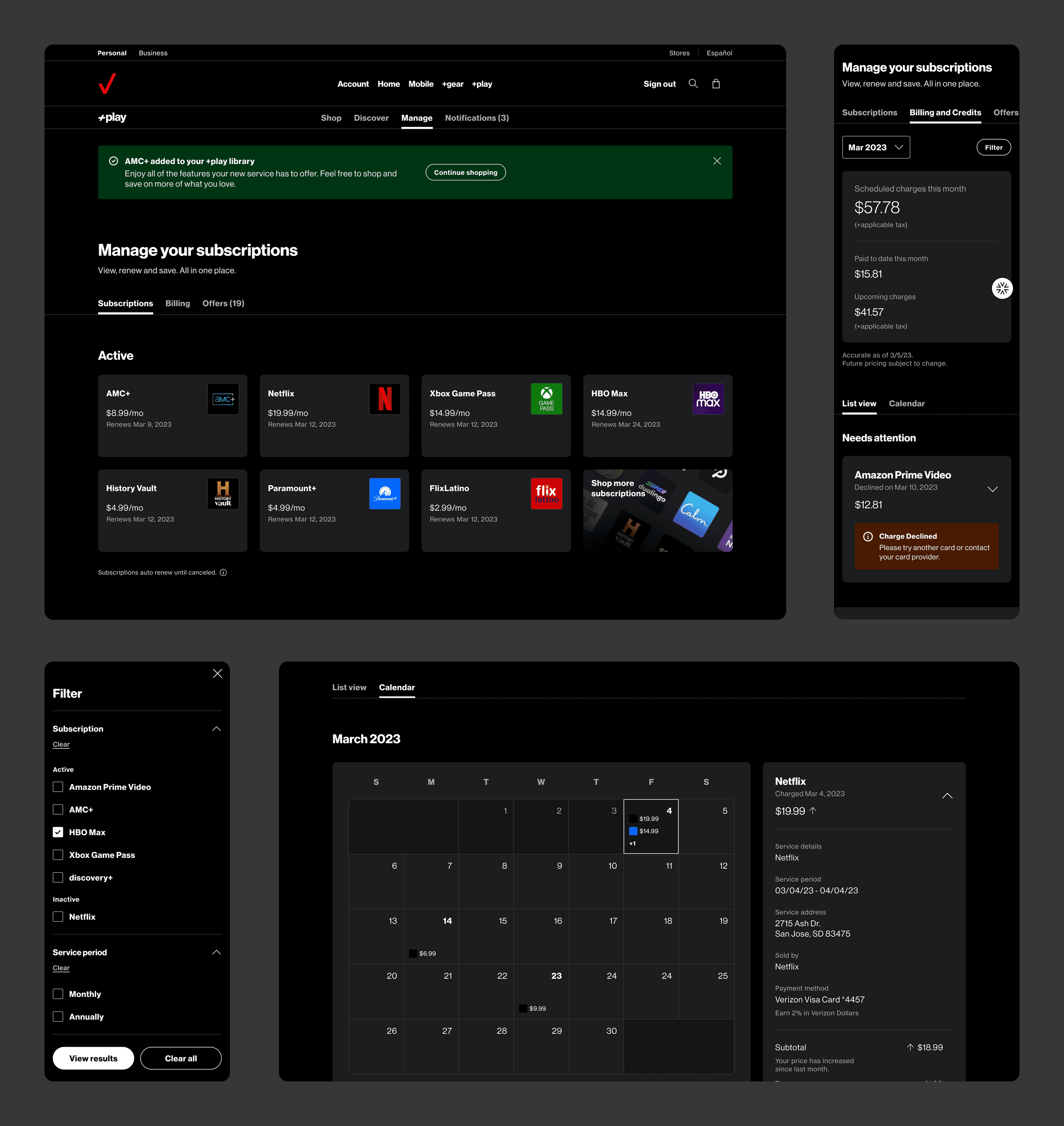 The platform needed to support bundling, cross-service discovery, and upsell opportunities while maintaining clarity and trust. This required designing a system that balanced flexibility with consistency and created a foundation for ongoing growth across Verizon’s subscription ecosystem.