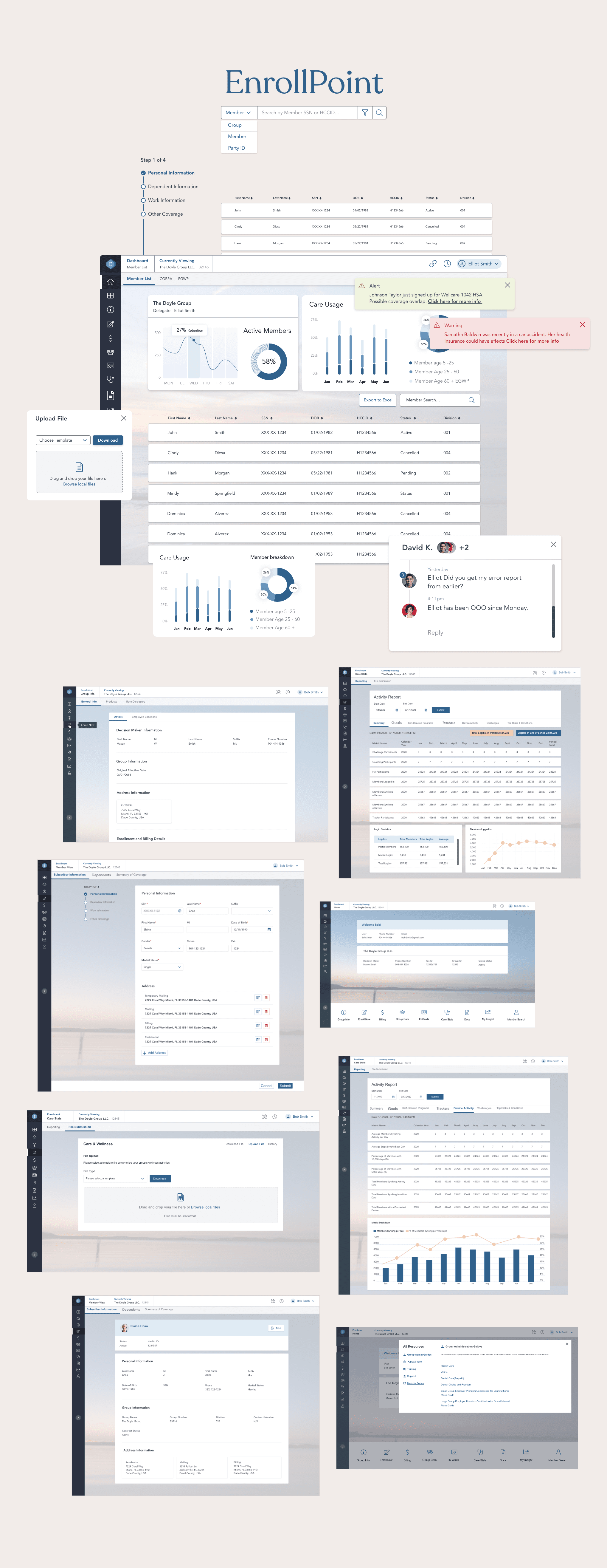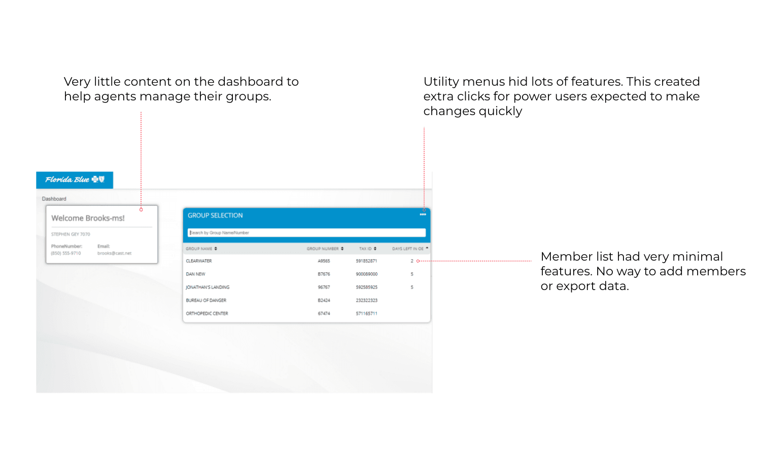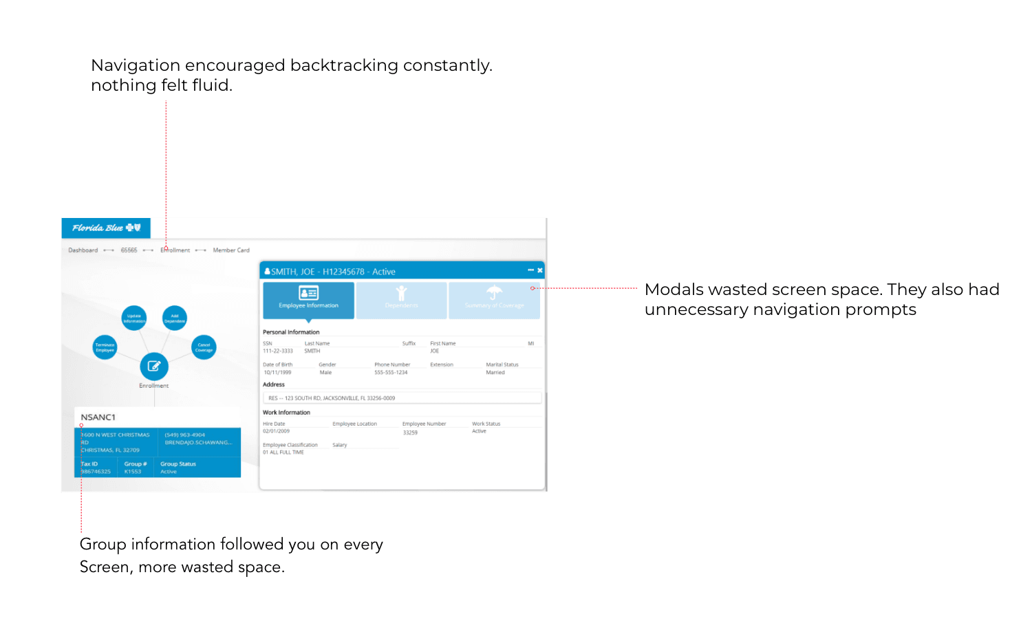EnrollPoint was Florida Blue’s decade-old enrollment system used by agents to manage onboarding and group administration. It had grown cluttered, inconsistent, and difficult to use, slowing down critical workflows across the business. I worked with a Design Lead, engineers, and analysts to modernize the platform and create a clearer, more intuitive experience for the agents who relied on it daily.