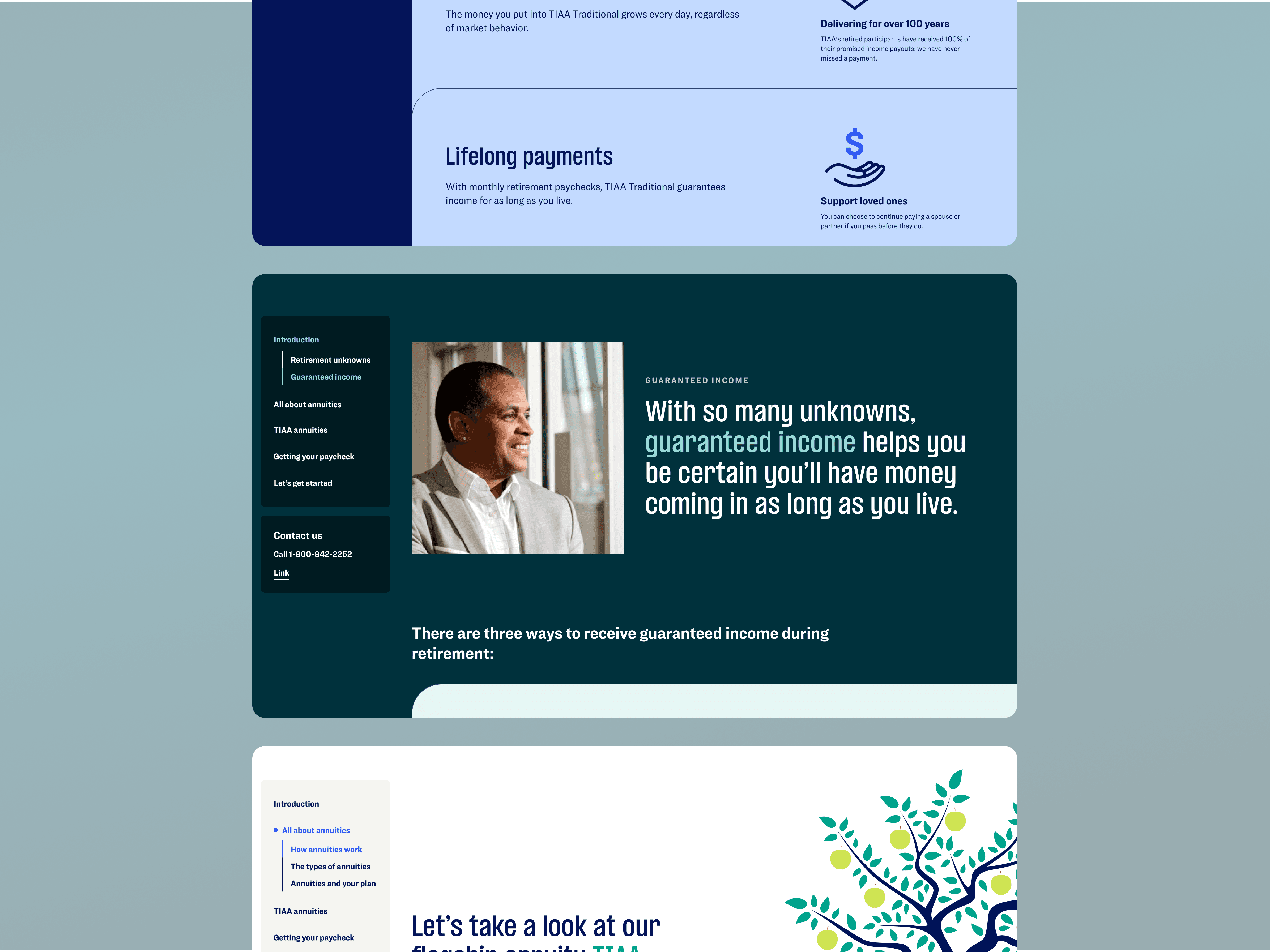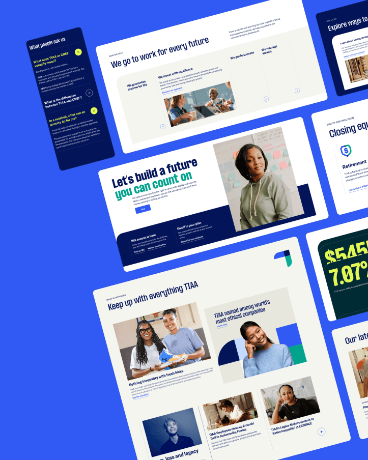 TIAA needed a clearer, more intuitive way to guide people through complex lifetime income topics. Our team shaped the experience into a unified storytelling system, and I led the pattern refinement, structure, and tokenization that allowed it to scale across TIAA.com.