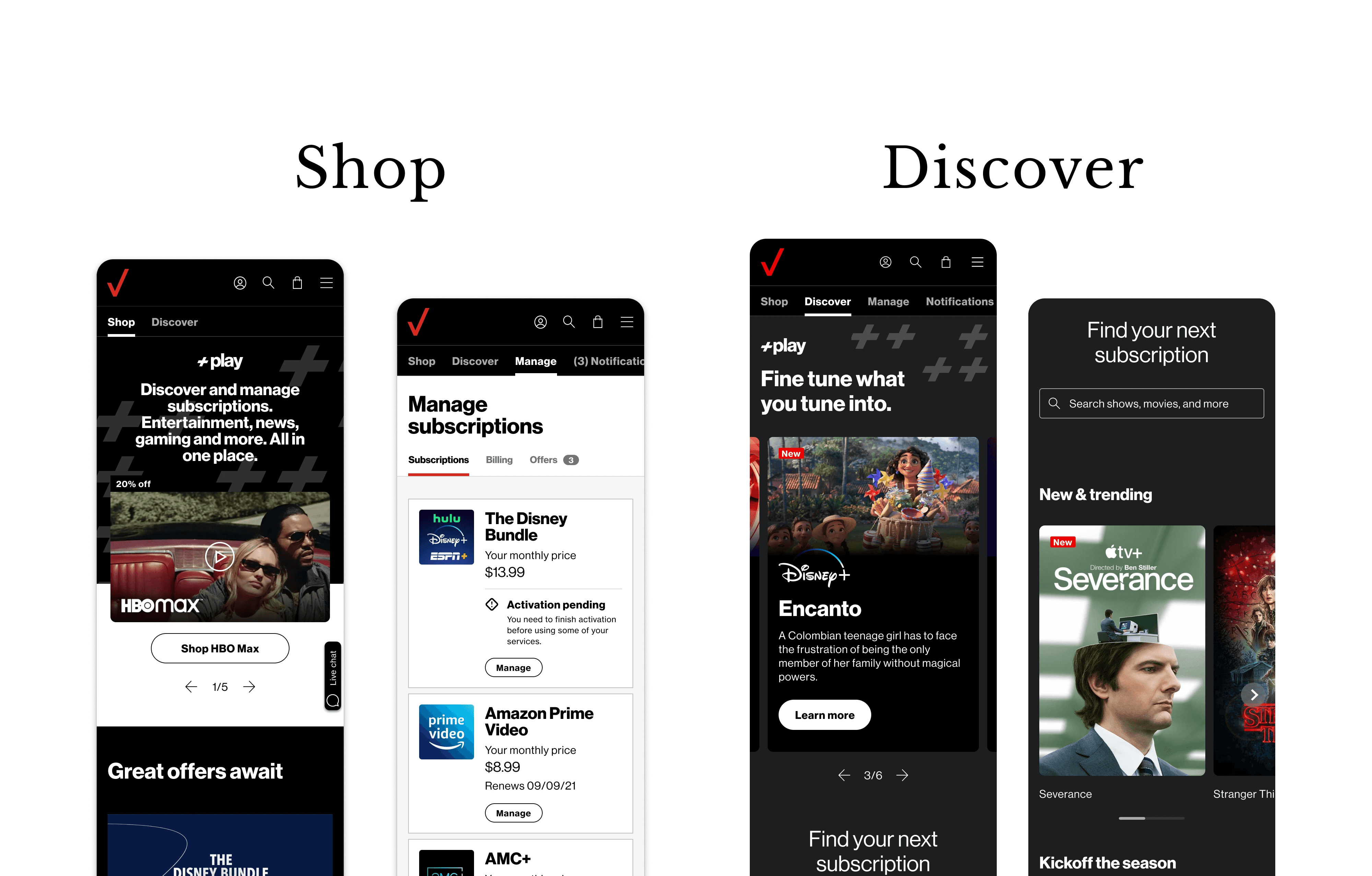 A system-first redesign that aligned +play’s disconnected experiences, merged Shop and Discover, and established the blueprint for Verizon’s next-generation 3.0 platform.