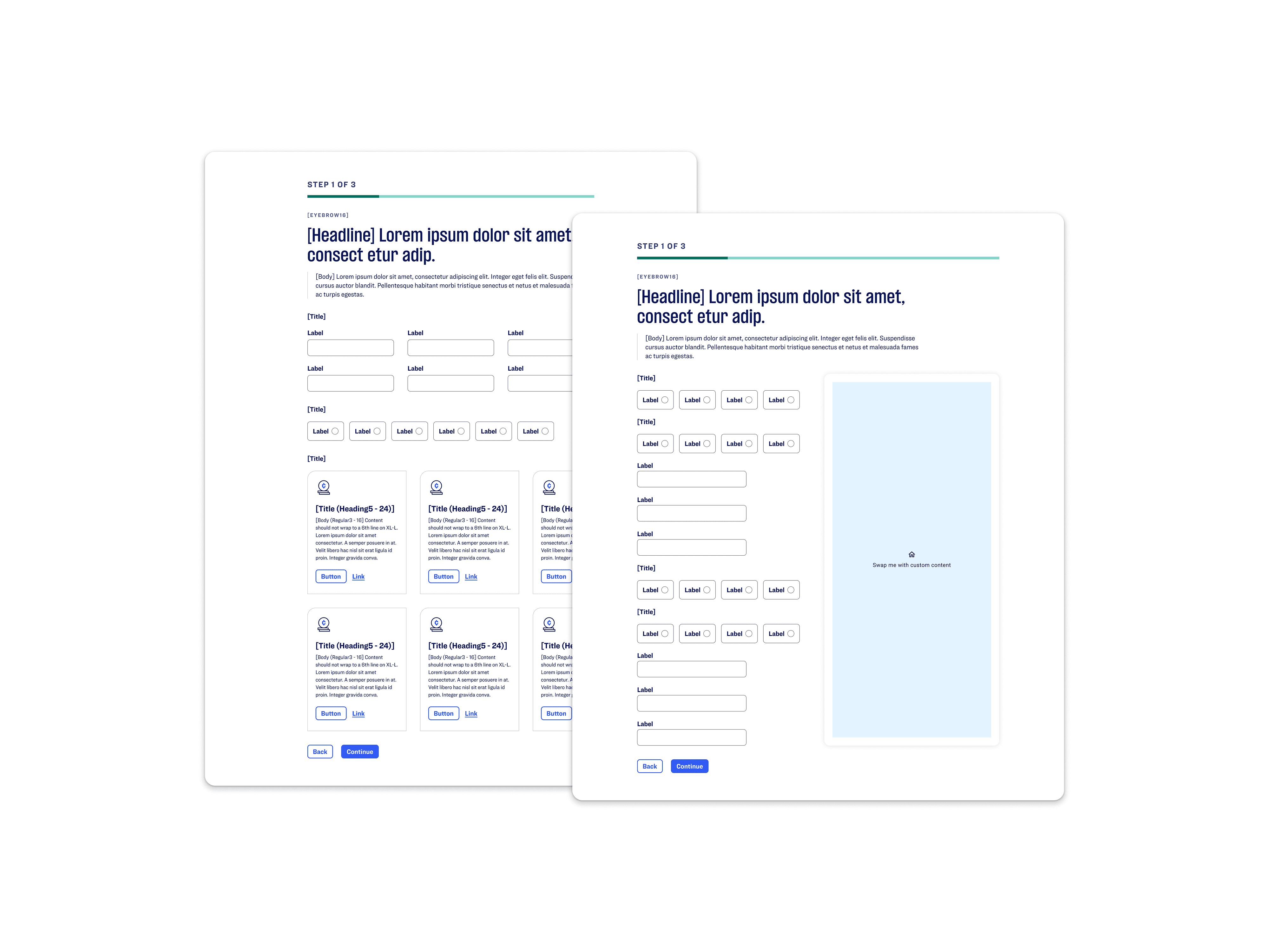 I designed a modular, three-column responsive framework with defined content zones, unified spacing, and token-aligned components for headings, inputs, steppers, and data visualization. Working with our Behavioral Experience Designer and the Ethos atomic team, we replaced placeholder-based inputs with persistent labels and contextual help patterns that met WCAG 2.1 AA standards. The system was implemented as a reusable AEM experience fragment, allowing React teams to adopt it quickly and consistently across tool types.