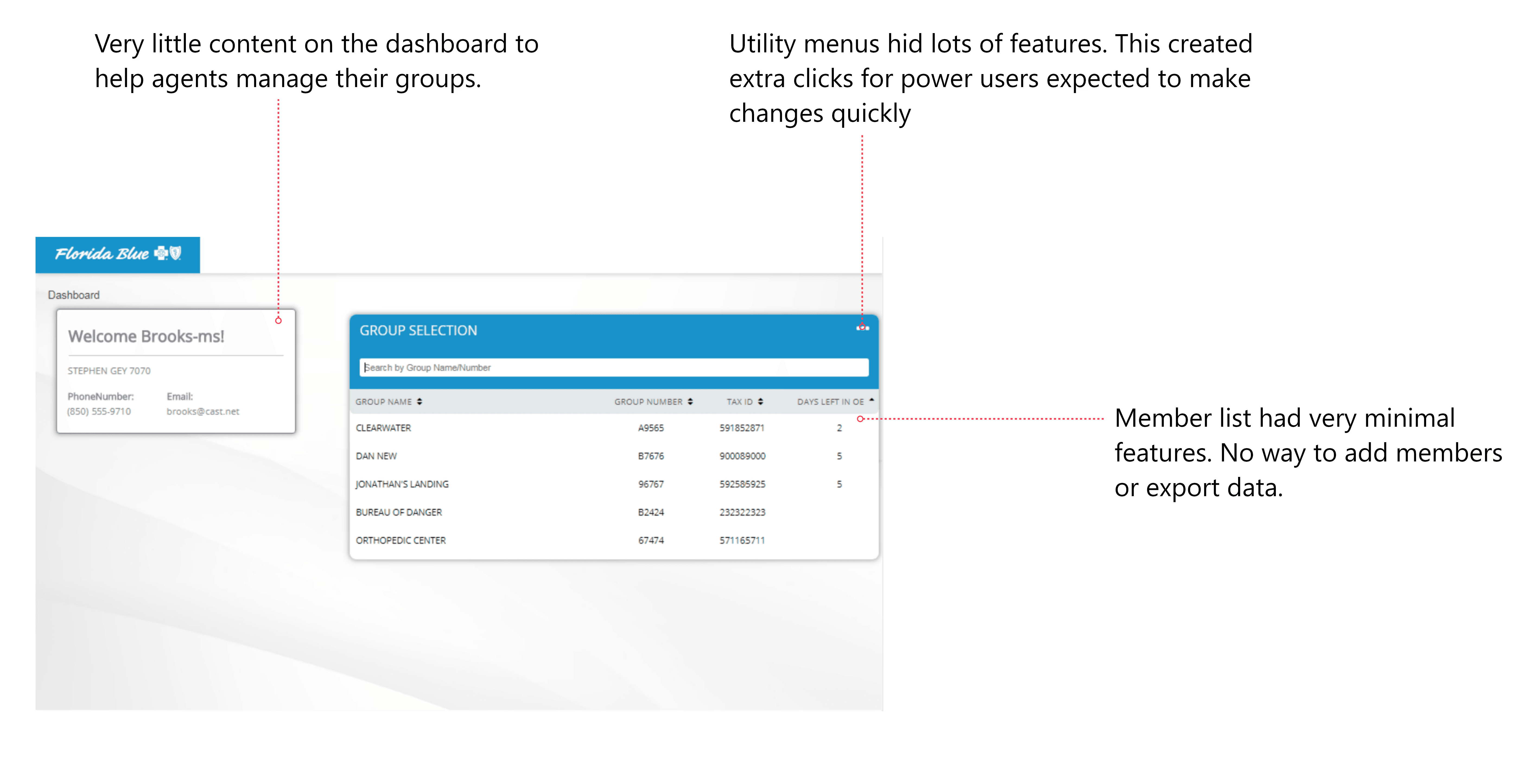 The original layout prioritized general information over action, forcing agents to scan dense screens and jump between sections to complete simple tasks. This increased cognitive load and led to missed details during enrollment and updates.