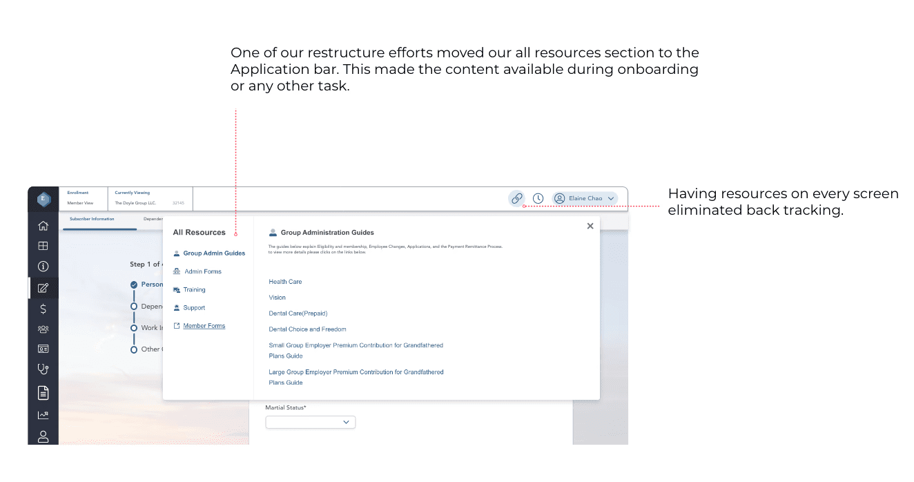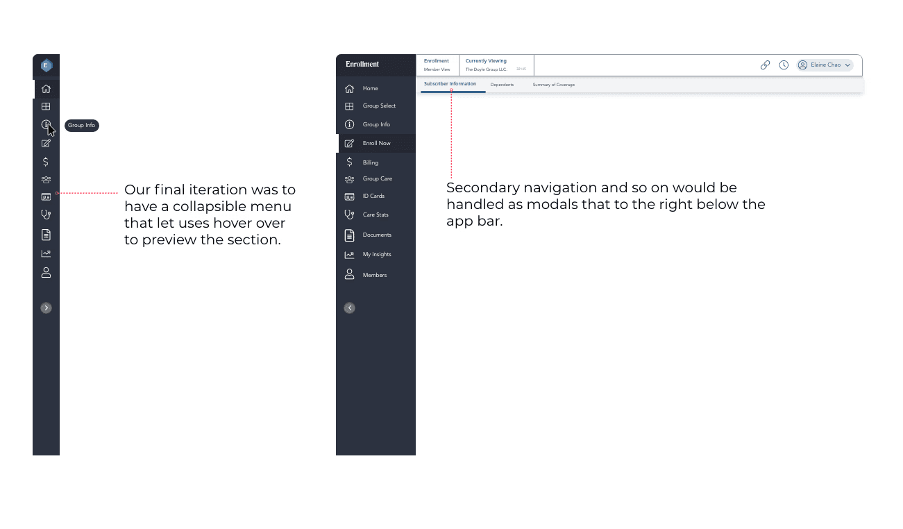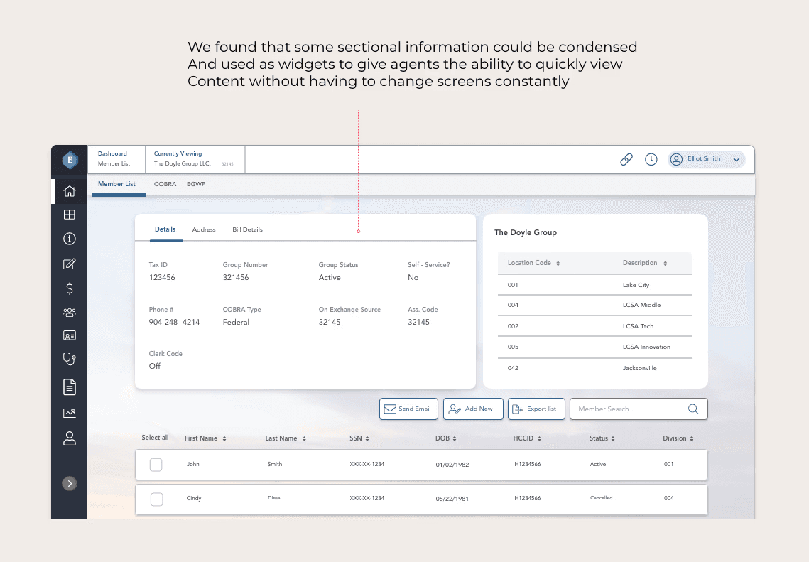The goal was to let agents move through enrollment without thinking about navigation at all. By placing controls directly on the screens where actions naturally occurred, the system became easier to scan, easier to learn, and easier to trust. This reduced cognitive load and allowed agents to stay focused on the task in front of them instead of figuring out where to go next.