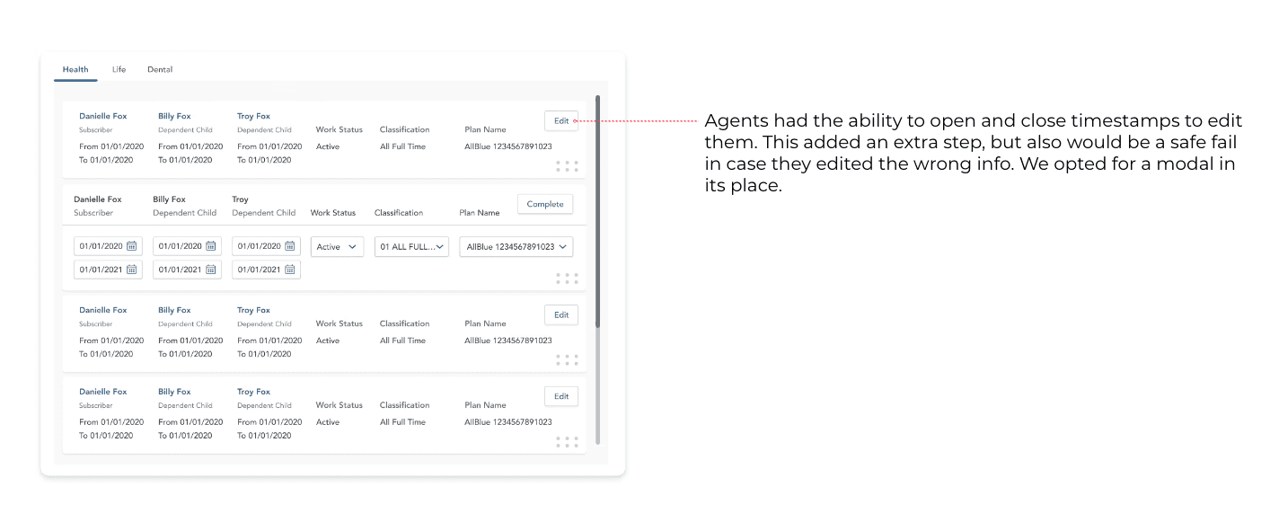 Updating time-sensitive health data was one of the most fragile and error-prone parts of EnrollPoint. Agents needed to re-date member activity without breaking records, losing context, or relying on risky workarounds.