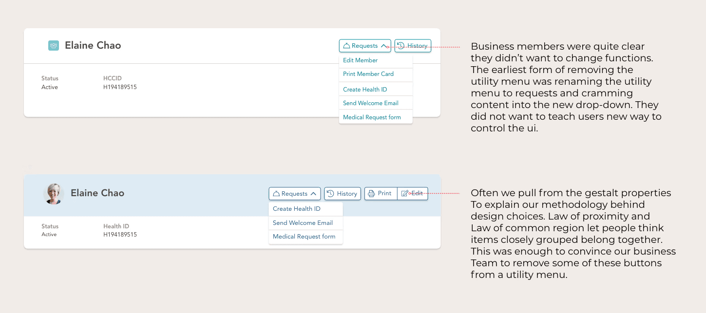 Purposeful use of space We re-evaluated how space was being used across the platform and shifted the interface toward power users. Sections were reorganized or combined, low-value content was deprioritized, and high-impact information was pulled forward. By aligning layout and hierarchy with what agents actually needed when entering a group, the interface became easier to scan, faster to use, and less error-prone.