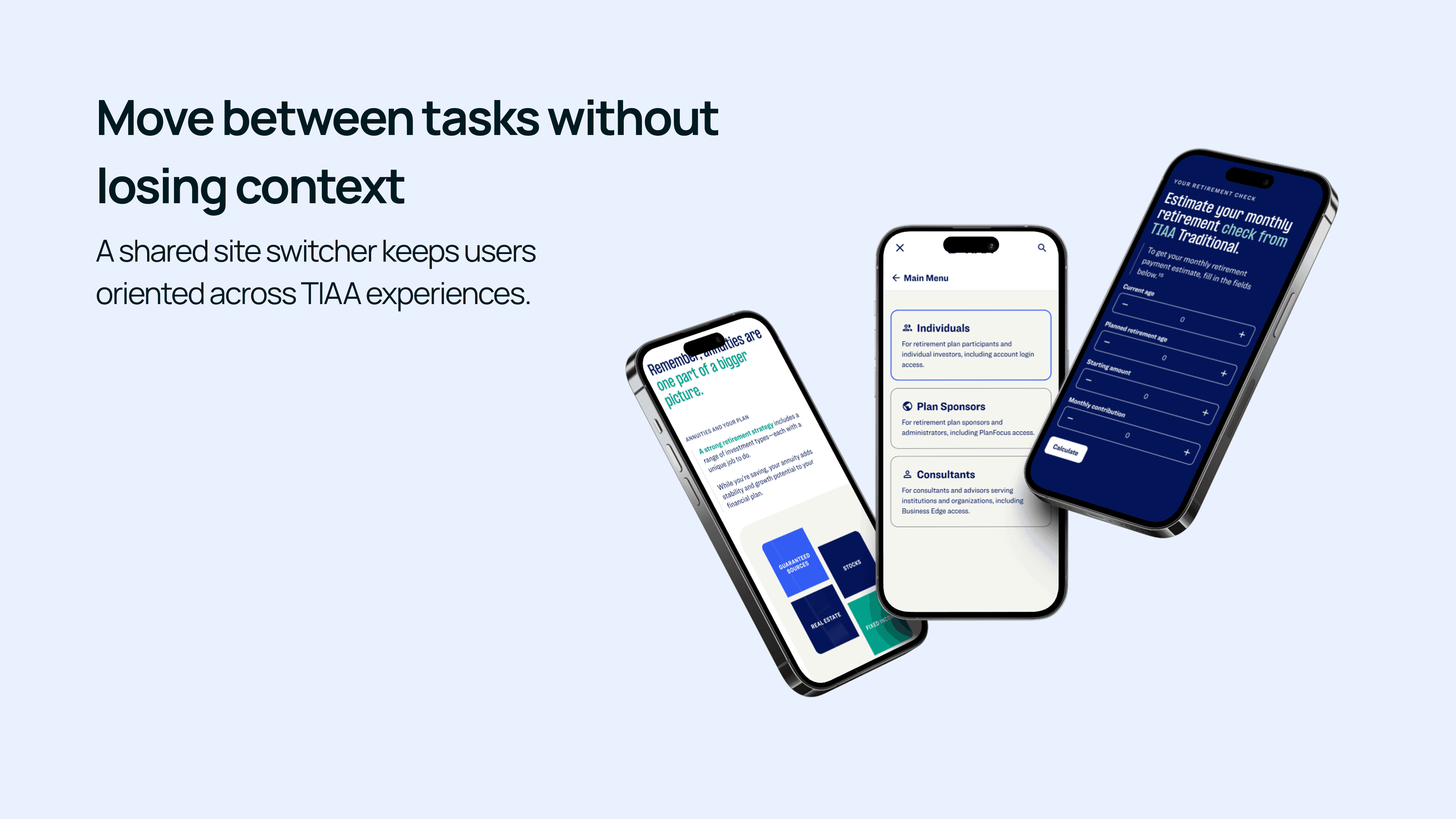 The results told the story: a 41% reduction in bounce rate through clearer content discovery. Standardized navigation patterns improved crawlability and internal linking across TIAA.org, contributing to a 76% improvement in SEO performance. By replacing bespoke dropdowns with system-backed structures, content relationships became clearer to both users and search engines.