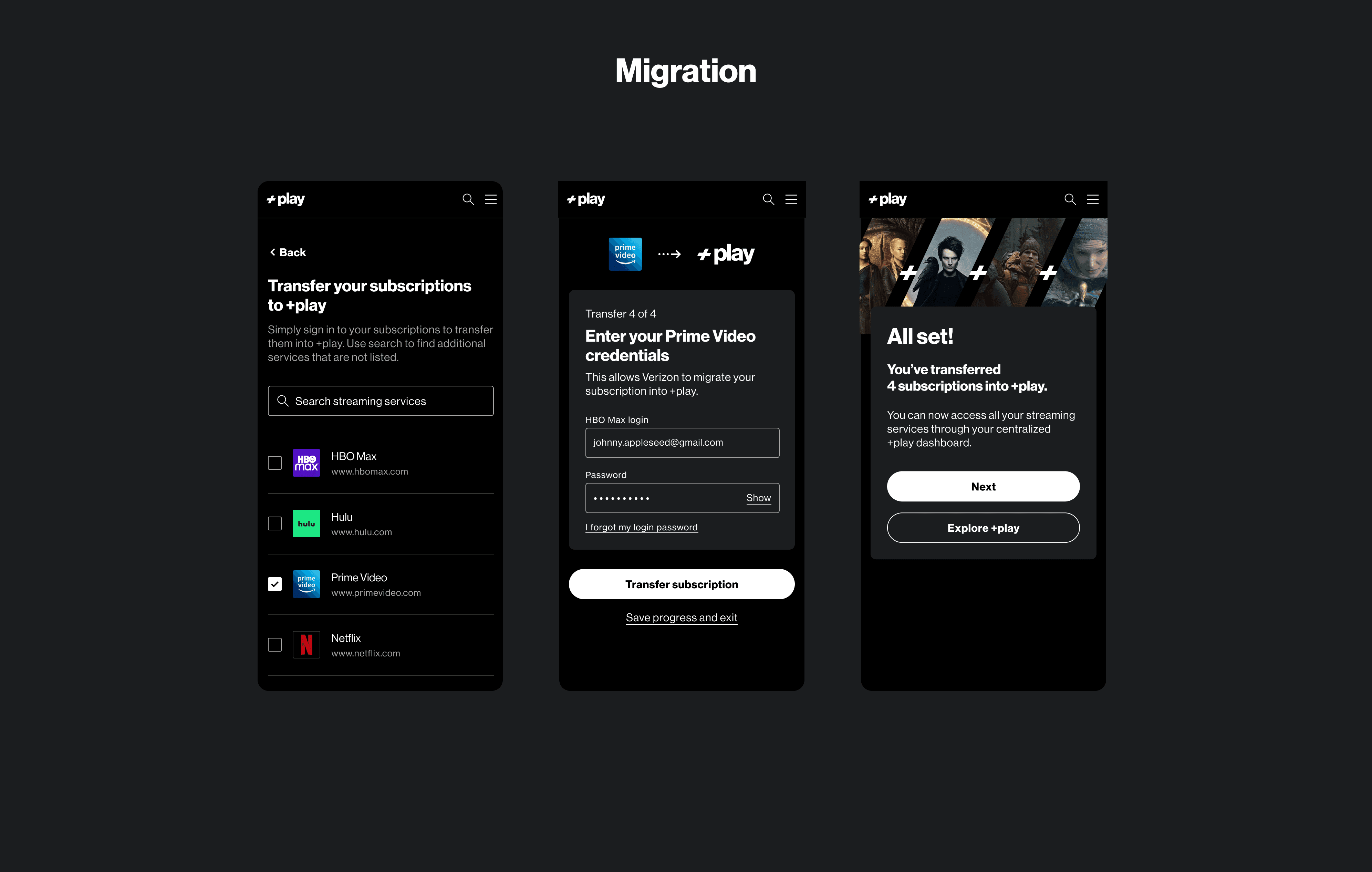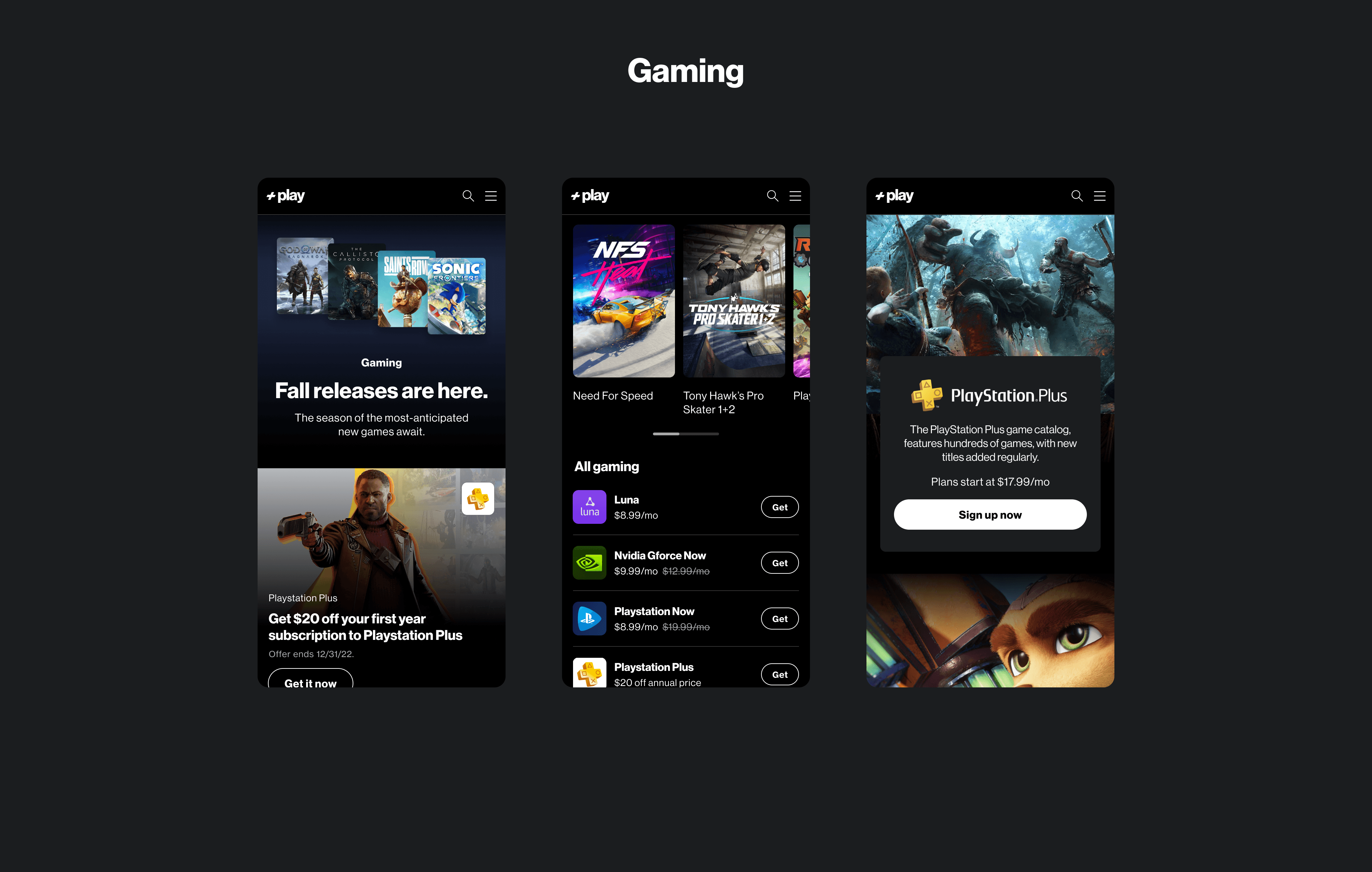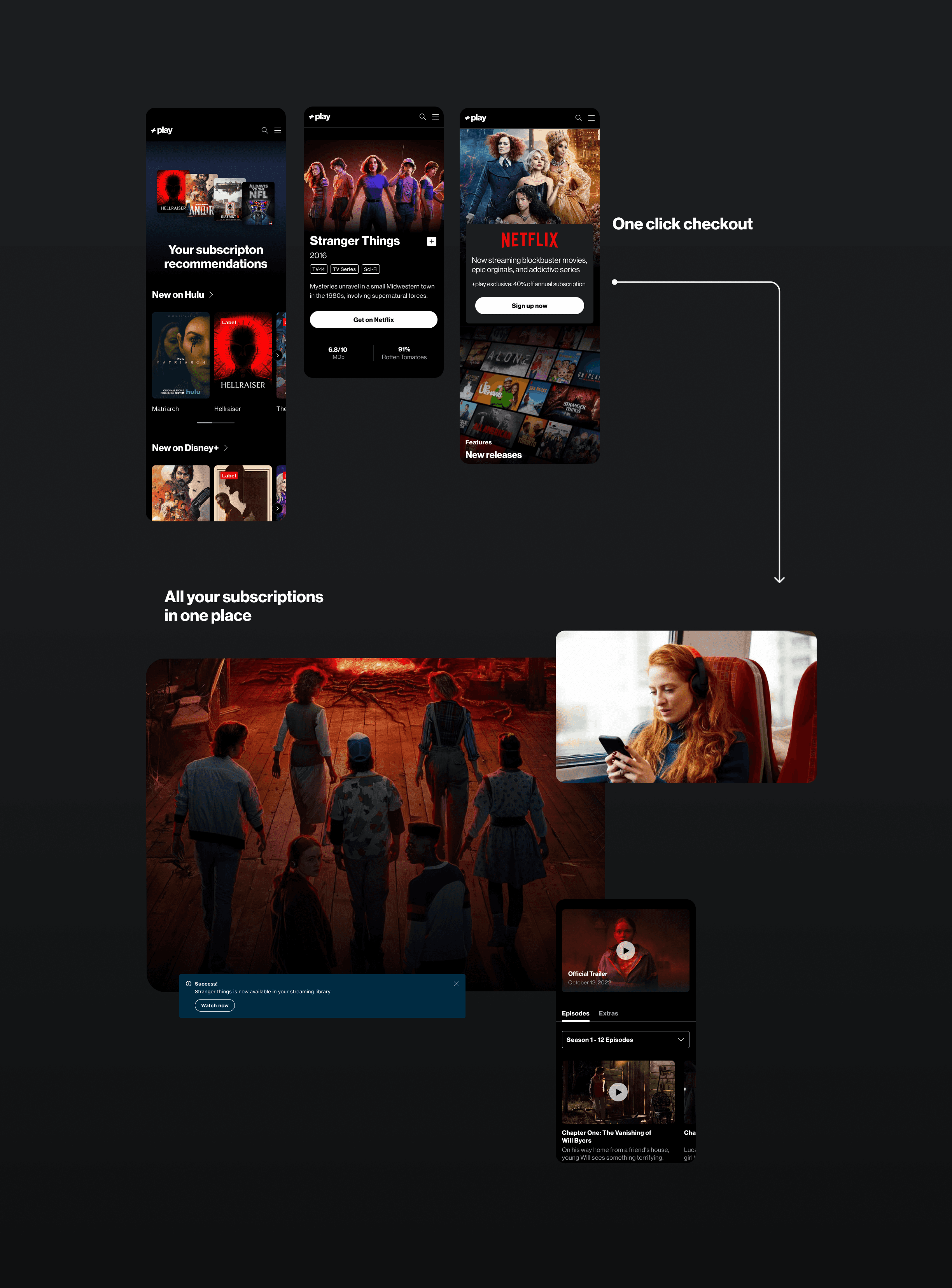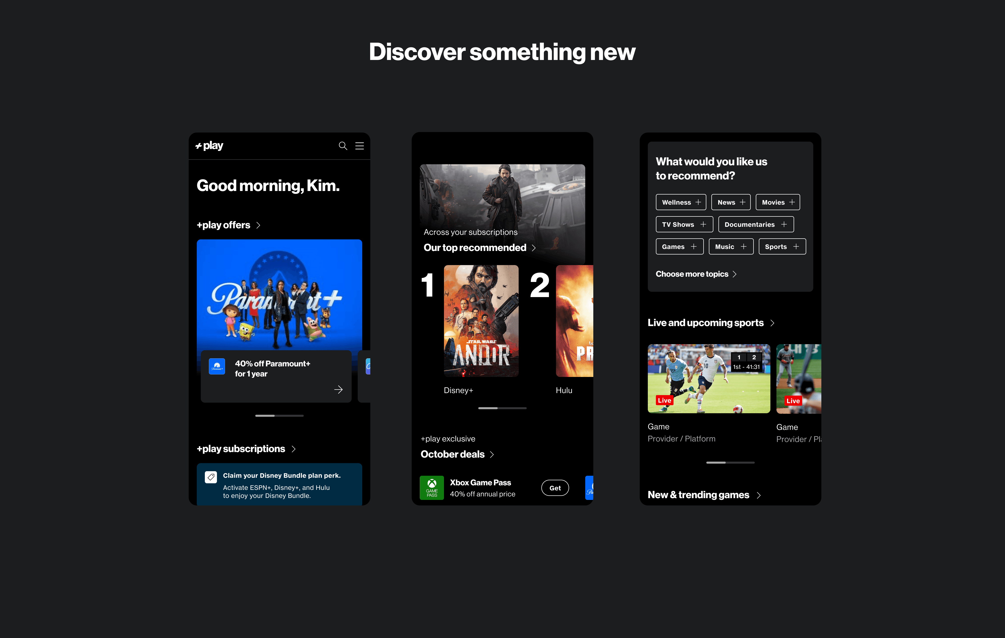 +play launched as Verizon's subscription aggregation platform—Netflix, Hulu, Peloton, all in one place with exclusive deals. But as the product grew, it fractured. Shop and Discover were built on different design system versions, creating inconsistent patterns, broken hierarchy, and a disjointed path from browsing to purchase. Users couldn't move naturally through the experience, and teams lacked a shared framework to guide what came next.